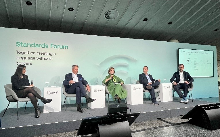 • "Du pilote à la mise en service : Développer le commerce basé sur les API" (30/09) - Dominique Honoré, notre Responsable mondiale du Financement Trade et Matières Premières, aux côtés d'une autre banque européenne, SWIFT et d'une Fintech spécialisée dans le commerce international. Les API transforment le financement du commerce. Cependant, transformer le succès d'un pilote en opérations évolutives est le véritable défi. Dans cette session, les premiers utilisateurs ont partagé leurs expériences dans le pilotage des API de SWIFT pour les garanties. Ce panel a analysé ce qu'il faut pour passer d'un proof of concept à une solution de financement du commerce prêt pour la production, alimentée par des API. "La banque doit être une architecture ouverte pour pouvoir connecter tous ces outils, nous ne pouvons pas imposer un outil unique, nous devons être ouverts et flexibles [...] je pense que nous devons rationaliser et standardiser le fonctionnement de tous ces systèmes" s’est exprimé Dominique.