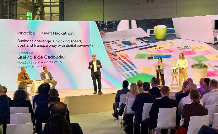 • Enfin, Guénolé de Cadoudal, notre Responsable des Actifs Numériques, était finaliste du Hackathon Sibos 2025 dont l'étude de cas était "Défi commercial : Débloquer la rapidité, le coût et la transparence grâce aux paiements numériques". Avec le protocole so|cash, nous avons démontré l'interopérabilité multi-chaîne et multi-bancaire dans une transaction FX instantanée et transfrontalière. Face aux défis du traitement en temps réel dans la trésorerie d'entreprise, nous avons combiné innovation, sécurité, intermédiation SWIFT et correspondance bancaire traditionnelle dans un prototype réaliste. La transaction consiste en un paiement transfrontalier USD/EUR s'appuyant sur : des identifiants standards (BIC pour les banques, IBAN pour les comptes, LEI pour les propriétaires) ; des chaînes de correspondance bancaires sur chaque devise ; un système de prélèvement direct sécurisé via blockchain ; l'orchestration par SWIFT, qui supervise l'exécution complète entre différentes zones monétaires.